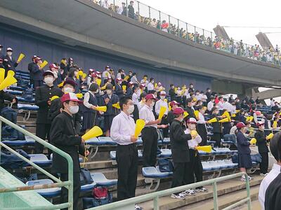 西附の生徒も高校野球部の応援に参加しました。本校の中高のつながりだけでなく、四校の伝統ある絆も肌で感じることができた貴重な体験になったことでしょう。