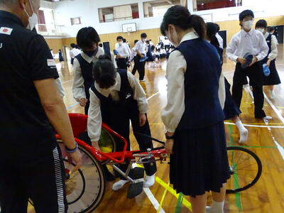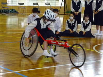 パラリンピックトライアスロン強化指定選手として本県で合宿している選手との交流や機材試乗体験を通して、パラリンピックについての知識を深めると同時に、他者の多様性や個性を認めながら、人としてどうあればよいかやどう生きていけばよいかを考える機会となりました。