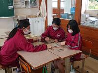 令和4年5月2日(月)、マスクの常時着用や換気の徹底を図りながら、新入学生の歓迎遠足を校内で行ないました。午前中は、1年生から3年生の縦割りチーム(12名)を作り、生徒会が企画した様々なゲームに、ウォークラリー形式で挑戦しました。また、午後からは、全学級総当たりのクラスマッチも行いました。涼しい天候にも恵まれ、楽しい1日となりました。