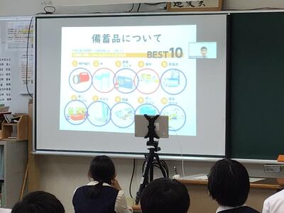 また、今回の防災学習は、校内リモート配信により、中高合同で実施しました。学校内で災害に遭った場合に備えて、校内の避難経路を一緒に確認することもできました。