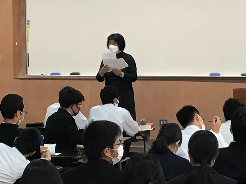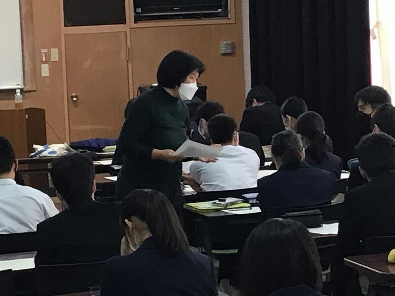 令和3年12月21日(火)、3年生の感性の授業において、短歌誌「心の花」所属の歌人 大口 玲子 氏 による短歌の学習会が開催されました。