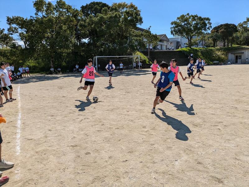 この日は先週延期になったクラスマッチの予備日。これ以上の延期はなく、雨天時は2時間ずつ3クラスずつのミニバレーの予定で残りの時間は授業。それだけは何としても避けたい。いや、どうしてもクラスマッチを通常の予定で行いたいという51期生の執念はこの秋の梅雨以上の雨空をも吹き飛ばした。しかも前日は記録的な線状降水帯が発生したのにもかかわらず。
