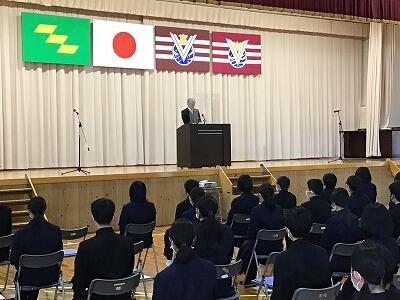 また、新型コロナウイルス感染拡大防止を図るため、在校生は各教室でオンラインによる参加となりましたが、卒業生の凛とした姿に、強い憧れを抱くことができたようです。