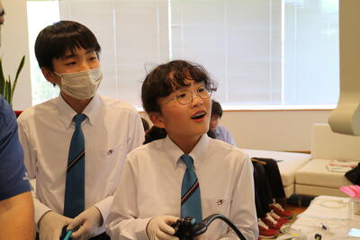 1年生が校外学習を行いました。最先端の医療機器の説明と操作の体験、バイオテクノロジーを活用した農業研究、スマート農機、宮崎県の畜産と家畜保健衛生所の役割に関する講話、病性鑑定施設見学と盛りだくさんの内容でした。こうした初めての場所では、礼儀面や積極性で日頃の自分が試されます。「お願いします」、「ありがとうございました」の言葉と活発な質問に、入学してからの成長が感じられる1日でした。きれいな青空の下で、美味しい昼食タイムも過ごしました。
