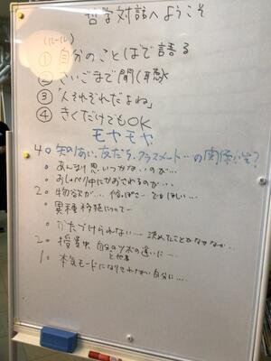 そのうえで、一人ひとりこのときのためにつけたニックネームと今気になっているモヤモヤについて紹介し合い、その中から今回のテーマを決め、対話を始めていきました。