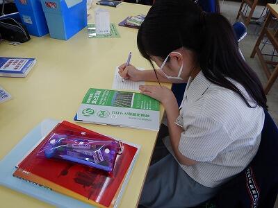 関連図書を一人1冊(別のクラスは3冊)手元に用意し、5分間点検読書する。それから