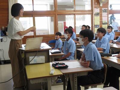 8月20日 中・高合同の2学期の始業式・表彰式後に中学部集会を行いました。各学年・生徒会の代表4名の生徒が、1学期の反省や課題を踏まえて2学期の目標を述べました。