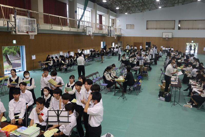 高3対象に、国公立大学との併願校を考える上で、予備知識をきちんと整理した上で選択する一助にすること、私立大学を取り巻く状況を客観的に捉えること、色々な大学の特徴を聞くことによって、自分の進路希望大学を再度確定していく契機とすること等を目的に体育館で実施されました。短期大学も含めて56校の学校がブースを作り、生徒は自分の希望するブースを3つ選び、時間ごとに説明を聞きに行きました。少人数での説明は距離が近く、大学の広報担当の方の説明も熱を帯び、生徒たちも食い入るように聞き、資料を見ていました。企画運営してくださった業者の方々、足を運んでくださった大学関係者の皆様ありがとうございました。49期生はぜひ、熟考選択しつつ、さらなる意欲向上のきっかけにして欲しいです。