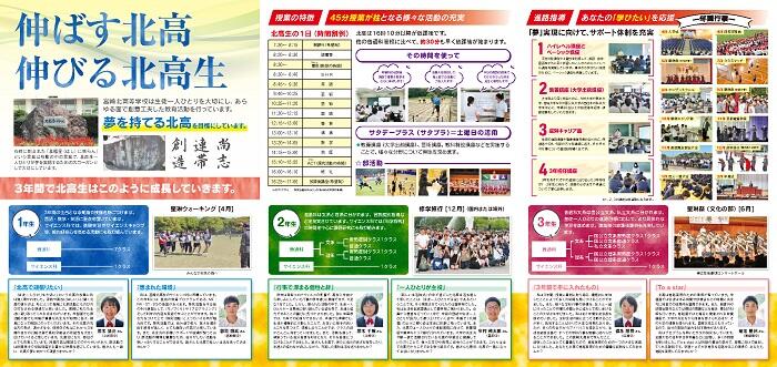 宮崎北高等学校は文部科学省よりSSHの指定を受けている普通科7クラス・サイエンス科1クラスの1学年320人の学校です。本校では特色ある授業や課外活動を行っています。