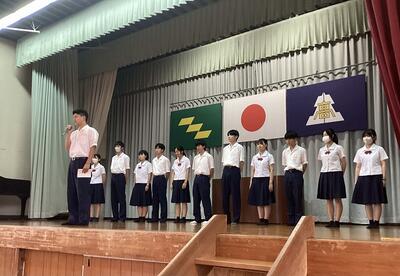 生徒代表で、新生徒会副会長の緒方藍さんが激励しました。
