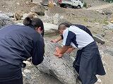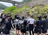 むかばき青少年自然の家を出発し、旧日之影町役場前河原、権現崎にてフィールドワークを行いました。