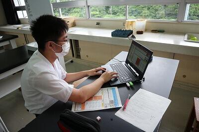 先生たちは各班を見回りながら、その日の研究計画などを聞き取りしています。