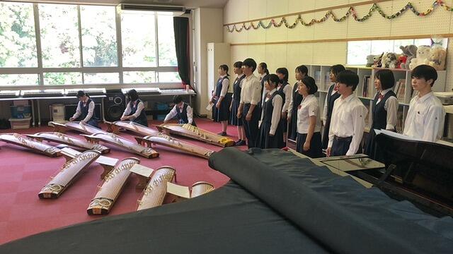 音楽部に琴と合唱を披露してもらい、最後に写真撮影をしました。