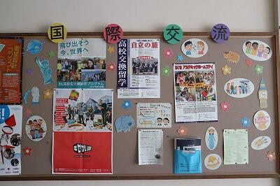 思わず目を引く掲示板には、国際交流の情報がずらり!