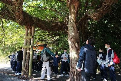 その後、神社を1周しながら地質と植生について観察を行いました。