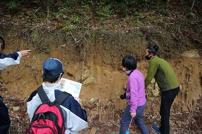 ヤクスギランドから下山する途中に7,300年前に堆積した「幸屋火砕流」の地層を発見。