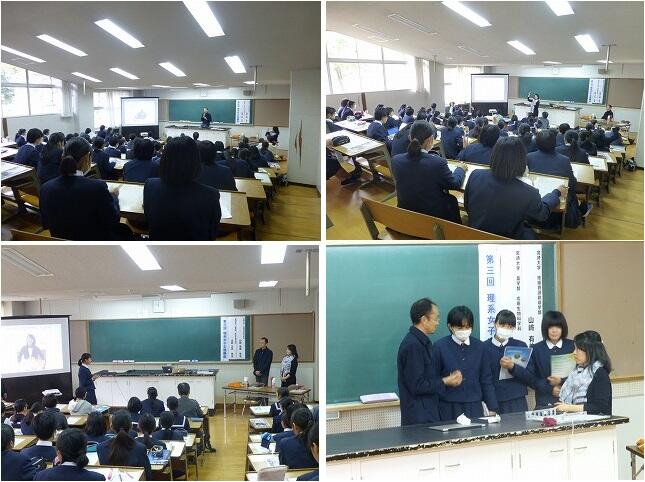 『第三回理系女子支援講座』計画しておりますので,今回の話を聞いた方,またはこの記事を見て興味を持たれた方は是非申込みをお願いします。チラシと案内文については後日『本校のホームページ』に掲載の上,『各中学校』に配布させていただきます。