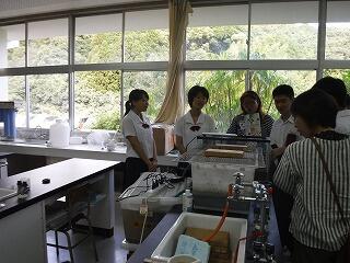 こちらは、新入生に総合実験室の説明を行っていますね。