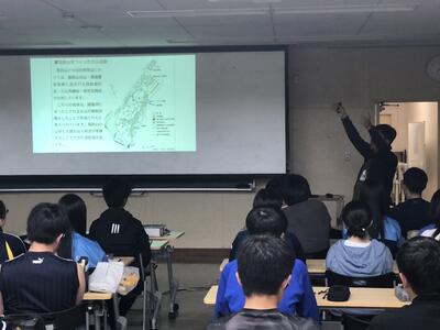 始めに、施設の概要説明、研究者による講演会が行われ、生徒は身近にこんなに広い施設があったことに、驚いている様子でした。