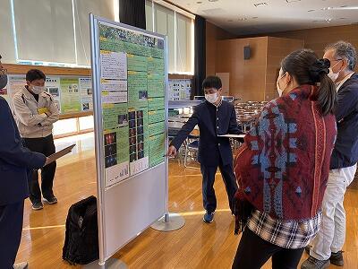 先輩の研究計画ポスターを参考にしながら「イラストを多く使って分かりやすく」