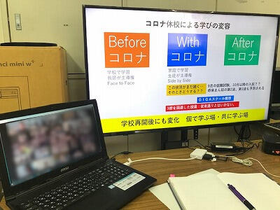 内容は、Zoomの使い方や、県内学校の事例紹介、