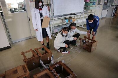 完成させたら各チーム試技を行い,結果を踏まえて再考していきます。