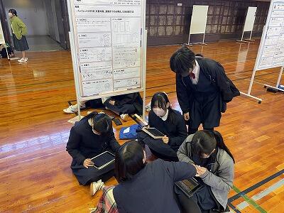「偉人で恋愛診断」や「家庭栽培王への道」などのユニークなテーマの探究活動も多くあり、これからの研究でどのような成果を出してくれるのか、発表を聞きながらわくわくするようなグループがたくさんありました。また、質疑応答も活発に行われており、9月に実施された探究活動見本市からの成長を感じることができました。