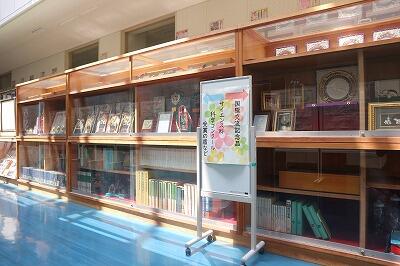 サイエンス科の研究が受賞したトロフィーや盾などが展示されており