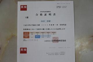 本校一年生の本井音緒さんが、難関の英検1級に合格しました。