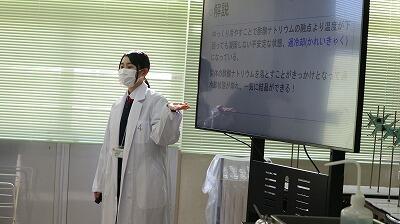 パワーポイントスライドを使い小中学生に分かりやすく説明を行っている姿が印象的でした。