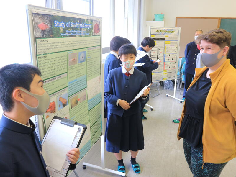 自分の研究テーマをポスターにまとめて発表します。校内でのポスターセッションや外部大会での発表を通して人前でもしっかり自己表現する力を育成します。