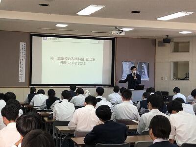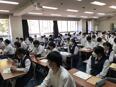 サイエンス科の魅力は縦のつながりが非常に深いことです。サイエンス科では学期に1回のペースでサイエンス科集会を開催しています。新年度になってすぐの集会では、学校生活や科活動について上級生から下級生に説明やアドバイスをしてもらい、下級生から上級生に聞きたいことを質問するなど、1年生は学科生活をスムーズに切ることができます。また、進路講演会なども開催し、高い志を持って目標を実現するための意識付けを図っています。