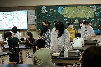 わくわくサイエンス教室ではサイエンス科生徒が探究活動関連の授業や課外活動で学んできたことを他者に指導することで、その内容をより深く身に付ける機会としています。また、サイエンス科生徒が企画・準備・運営をすべて行います。そのため、計画性や主体性などを身に付ける絶好の機会となっています。