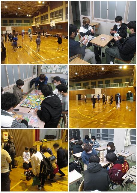 12月22日(水)に、東風マッチ(クラスマッチ)が行われました。スポーツやゲームを通して、生徒の親睦を図る行事です。前半は、クラス毎にチームを編成してミニバレーを行いました。優勝は2AのBチーム、準優勝3AのAチーム、3位は4AのAチームの成績でした。後半は、体育館でバドミントンやバスケットボールが行われました。教室では、幾つかのグループに分かれて、トランプ・オセロ・人生ゲームなど定番のゲームで楽しむ生徒がいたり、最近人気が出てきた様々なボードゲームに取り組む生徒がいて、楽しい時間を過ごしました。