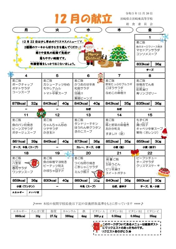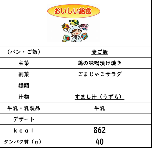 9月の献立が変更になりました。
