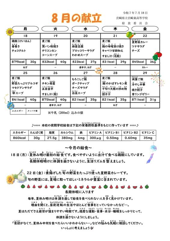 本校夜間部の給食室が制作した動画「給食ができるまで」です。ぜひ、ご覧ください。