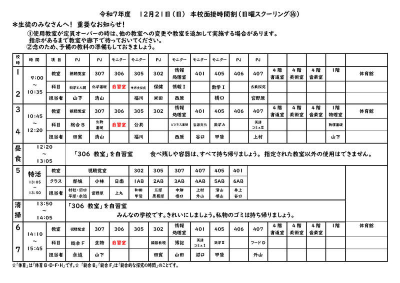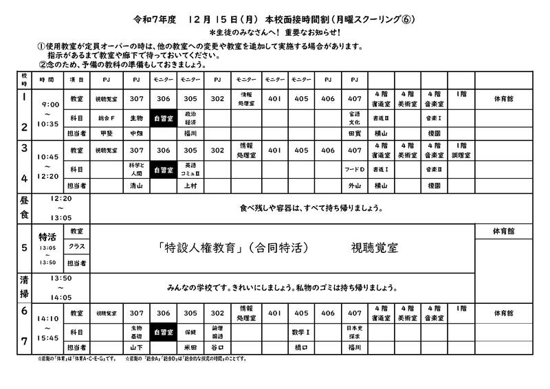 3.当日、教室の場所が分からなくて遅刻した場合も特別な配慮はありません。余裕をもって登校し、校内の案内に従って教室に行ってください。