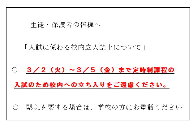 ①忘れ物があると、スクーリングを受けられません。(教科書・レポート・筆記具・学習書)