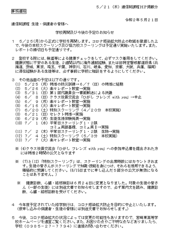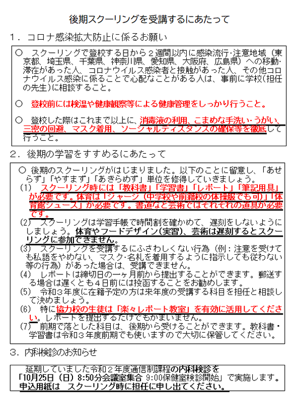 *新型コロナウィルス感染症対策のため、スクーリング開始時に全員検温を行います。