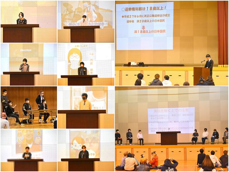 11月25日(水)、生徒会総務選挙が行われました。立候補者がそれぞれの思いを訴え、その後投票を行いました。また、主権者教育の一環として、宮崎市選挙管理委員会の方を迎えて、選挙についての講演をしていただきました。
