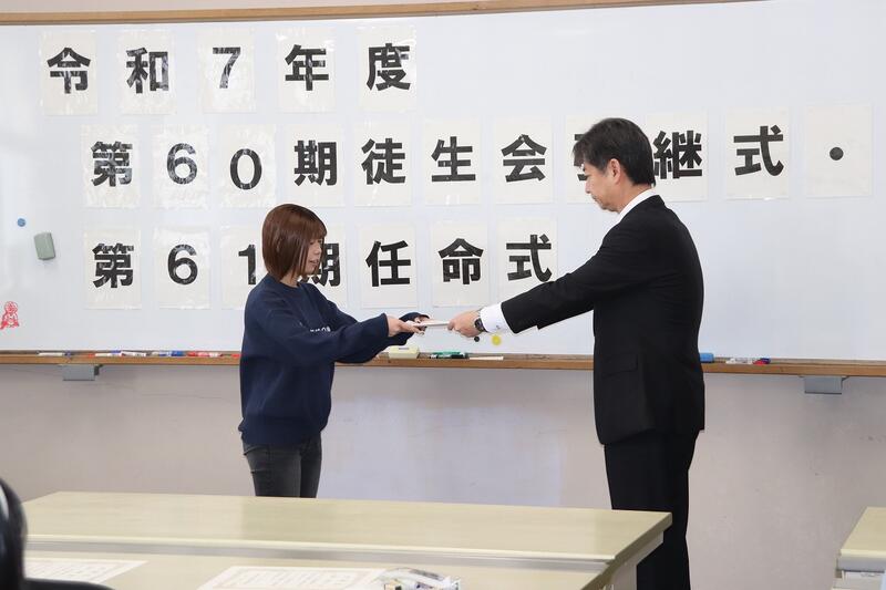 校長先生より、60期生徒会役員には感謝状が、次期61期生徒会役員には任命状がそれぞれ授与されました。