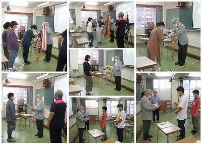 二人に対する激励会が7月26日(火)に校長室で行われました。黒木校長は、「本物に触れるこの機会を大いに生かして欲しい。頑張って下さい。」と二人を激励されました。表彰伝達式