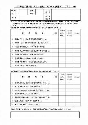 ねらいは、生徒の皆さん自身の授業への取り組み状況を見つめ直してもらうため。そして、授業の進め方について生徒の皆さんの意見を反映させて、さらにわかりやすい授業を行うことを目的にしています。