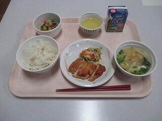 麦ご飯・鶏の照る焼き・ピーナッツ和え・竹の子の味噌汁・牛乳