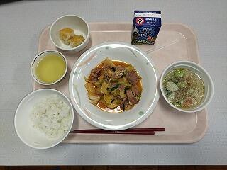 麦ご飯・ホイコーロー・にんじんしゅうまい・もやしの中華スープ・牛乳