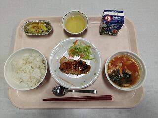 麦ご飯・鶏のマーマレード焼き・ほうれん草のグラタン・トマトスープ・牛乳