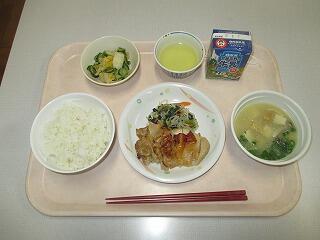 麦ご飯・鶏の照り焼き・おかか和え・玉ねぎの味噌汁・牛乳