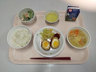 麦ご飯・コロッケ・もやし旨煮・かき玉汁・牛乳
