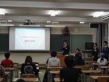 はじめ緊張気味だった生徒諸君でしたが、梶谷先生のにこやかな表情、気さくな語りに引き込まれ、自己紹介が終わる頃には、すっかり緊張感も解けて、いつもの賑やかな雰囲気で授業はすすんでいきました。