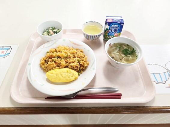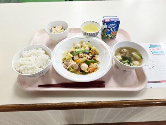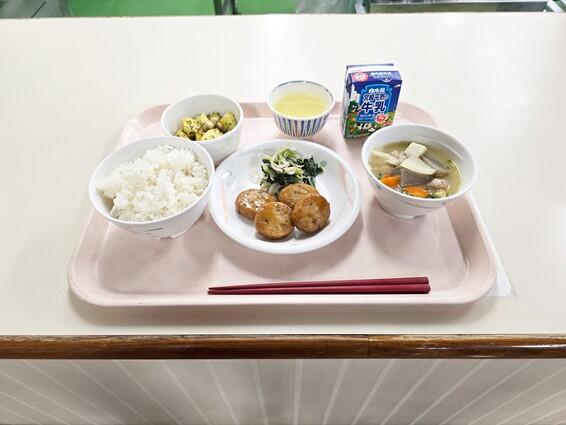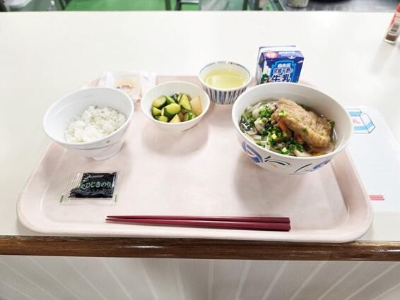 生徒は17時には登校して、給食室で給食を食べます。調理室でできあがったばかりのものなので、毎日温かい給食を食べることができます。音楽が流れながら、友達、先輩、先生方と食べる給食はとてもおいしいです。